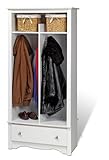 Give your entryway, foyer or mudroom some much-needed storage with the Entryway Organizer. Keep your coats, jackets and sweaters neatly stored in the two divided hanging areas, and tuck away gloves, hats and scarves in the single drawer underneath. For everything else, there's the divided top shelf, the perfect space for school supplies, hats and other everyday items. This organizer is an indispensable piece in any busy home.Detailed with brushed nickel knobs24.75"W x 5"H x 12.5"D (drawer)13"W x 9"H x 14"D (top)laminated composite woods with a sturdy MDF backerLength 16Width 31.5Style TransitionalAssembled dimensions 31.5"W x 68.75"H x 16"DHeight 68.75Internal Dimensions 13"W x 42.75"H x 15.5"D (bottom)Finished in durable fresh white laminateColor WhiteFinished Light Wood