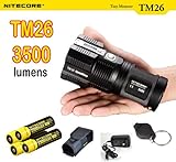- Bundle include: TM26 Rechargeable Flashlight, 4 x Nitecore 18650 Batteries, Charger, Micro Light locator