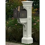 Includes large decorative post and mailbox support arm with built-in paper holder slot . Mailbox, mounting hardware kits and 4 in. x 4 in. wood post inserts are not included . Unique New England styled product offering the timeless charm of the East Coast . Made from high quality Polyethylene with built in UV inhibitors for long lasting protection from the elements . Installs over standard 4 in. x 4 in. wood post . Holds mailbox weighing up to 16 lbs. . Medium or large mailbox recommended, minimum 7 in. width . May need power washing and possible light scrubbing with mild detergent to maintain a bright, clean finish . Available in different finishes . 15-Year limited warranty . Add no dig ground as an accessory . 32 in. L x 13 in. W x 64 in. H (23 lbs.) Distinctive in design... Bring the past together with the present in a way thats provocative and radiant. Good taste and superior quality never go out of style.